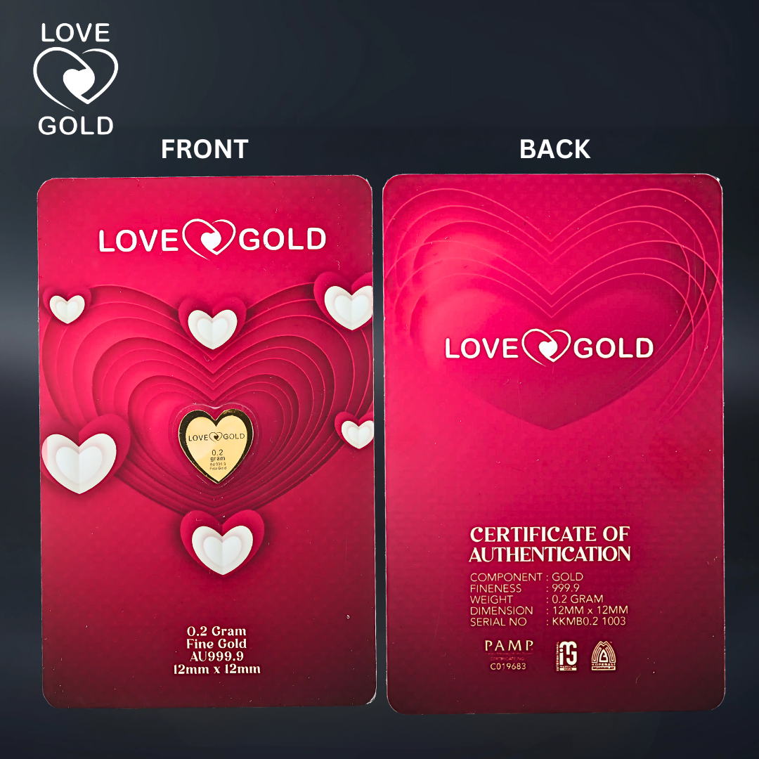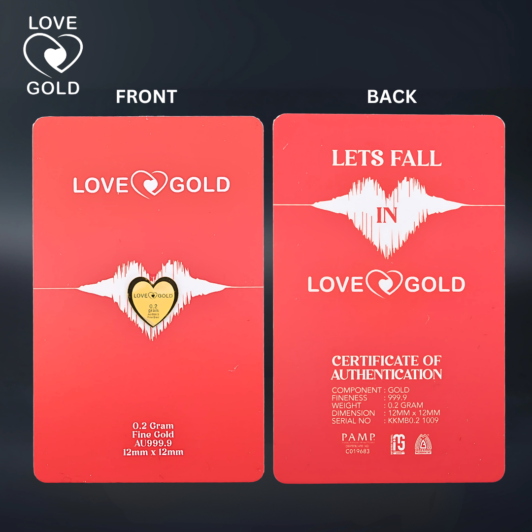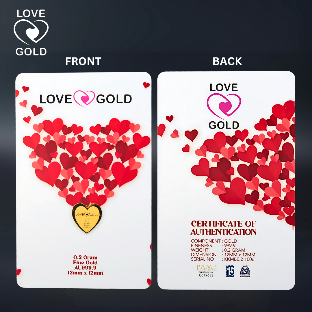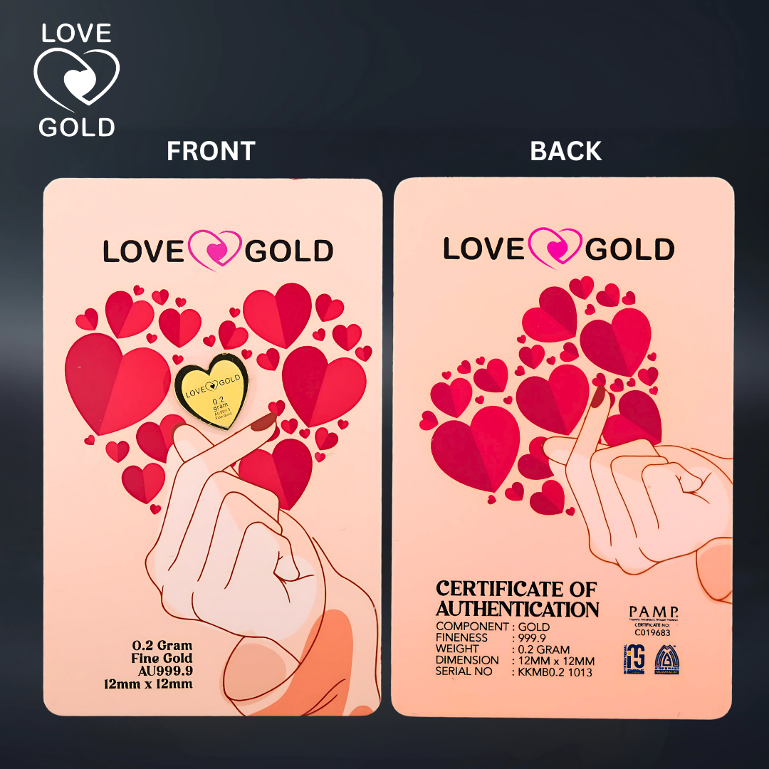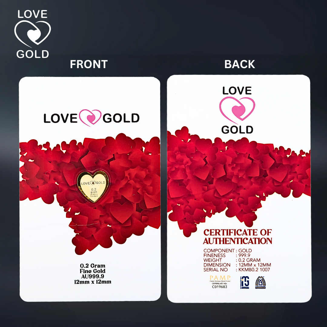 Tambahkan Love Gold Muamalat AU999.9 Love Series Gold Bar Card ini ke dalam koleksi anda dan raikan keindahan emas tulen 999.9.